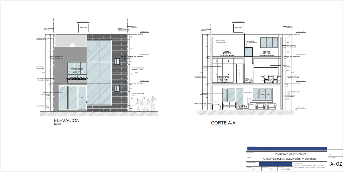 • Plano - Arquitectura:Elevación y Cortes